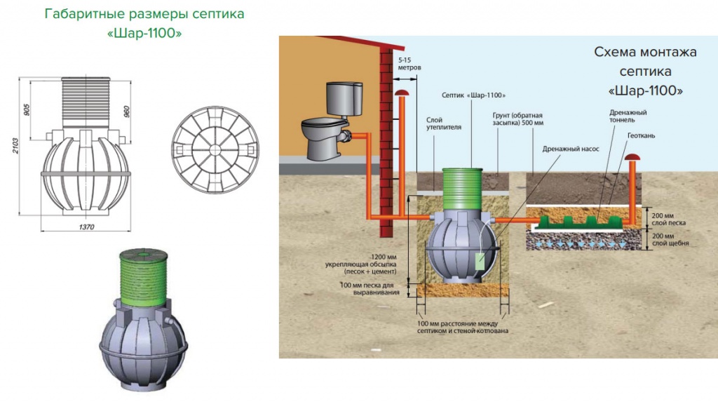 En effet, une construction d'une capacité de plus de 1000 l / jour. traite facilement les déchets d'une grande famille, même si tous les résidents du chalet utiliseront activement les toilettes, le bain et la douche, laveront régulièrement la vaisselle et se laveront.