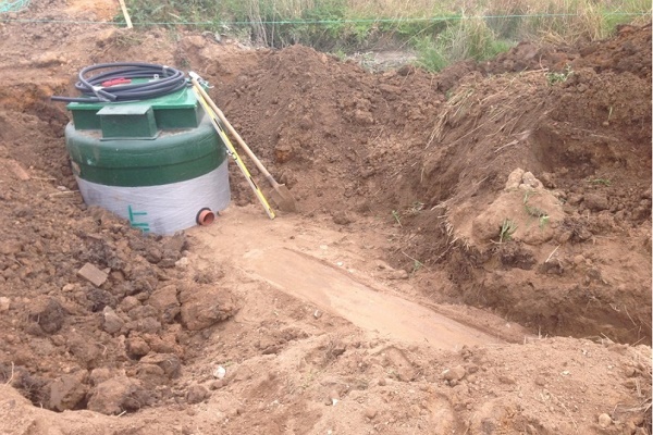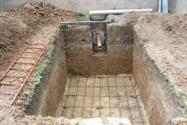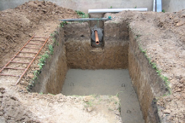 La fosse de fondation dans laquelle la fosse septique sera installée devrait fournir un emplacement pour une base en béton sous sa capacité et permettre le raccordement au système d'égouts à la bonne hauteur.
