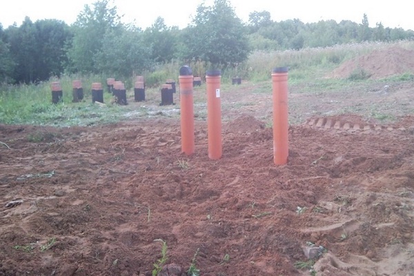 Des tuyaux d'égout en plastique sont posés dans les tranchées, le long de la longueur desquelles une perforation est effectuée. Vous devez maintenant bétonner le fond de la fosse pour la fosse septique. Tout d'abord, un coussin de sable de 200 mm d'épaisseur est posé, tassé et nivelé vers le bas.