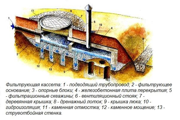 La durée de vie n'est pas inférieure à 20 ans, mais en même temps, il y a une sédimentation du sol, un lavage des fondations, une pollution des couches du sol et de l'eau. Lors de l'ensablement d'un tel système d'égouts, lorsque même l'eau ne peut pas sortir, le puits devra être déplacé et l'ensemble du système d'égouts devra être refait.