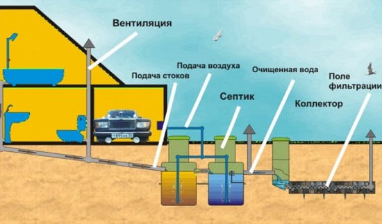 La ventilation est nécessaire pour que l'air pénètre dans le système, ce qui garantit le fonctionnement normal des micro-organismes. Ils traitent les eaux usées domestiques et sont exempts de la composante organique. Pour assurer une circulation constante du flux d'air, deux tuyaux de ventilation sont nécessaires.