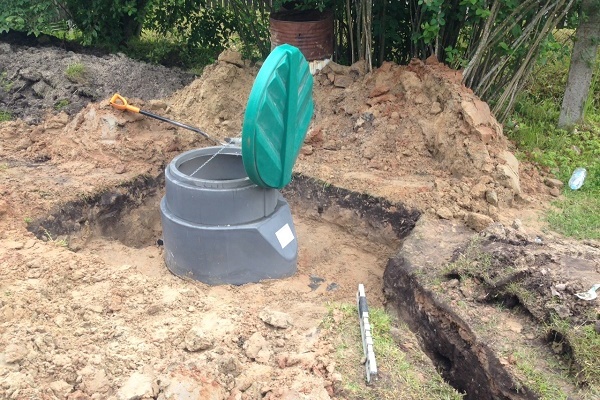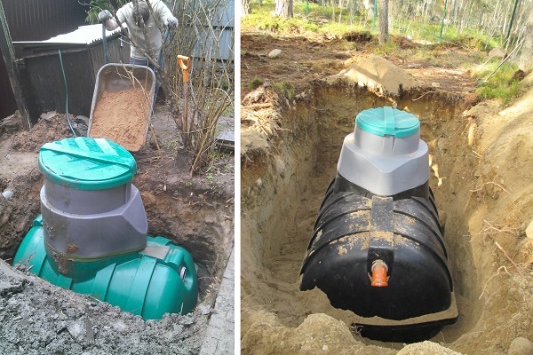 Il est nécessaire de creuser une fosse septique en plastique à une profondeur recommandée par le fabricant. Et il est préférable de remplir la fosse de fondation autour d'elle avec un mélange sable-ciment destiné spécifiquement à ces travaux. Après durcissement, il jouera le rôle d'une «coque» protégeant de la pression du sol, et en même temps des crues.