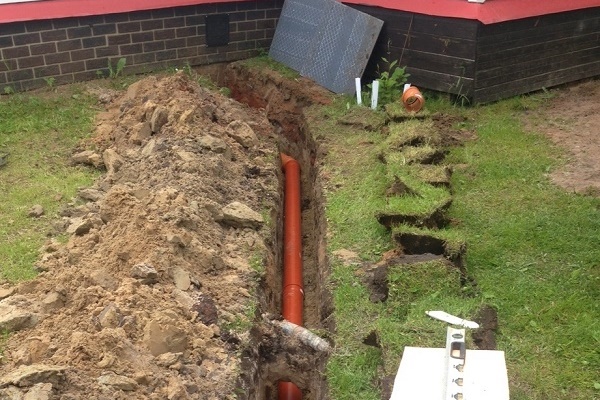Pour un tuyau d'évacuation, une tranchée doit également être creusée. Sa pente optimale est de 1: 100 ou 1 cm par mètre.