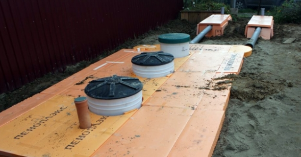 Des tuyaux similaires relient une fosse septique et un champ de filtration. Pour isoler les deux pipelines, vous pouvez utiliser du polyéthylène expansé ou du remblai d'argile expansé conventionnel.