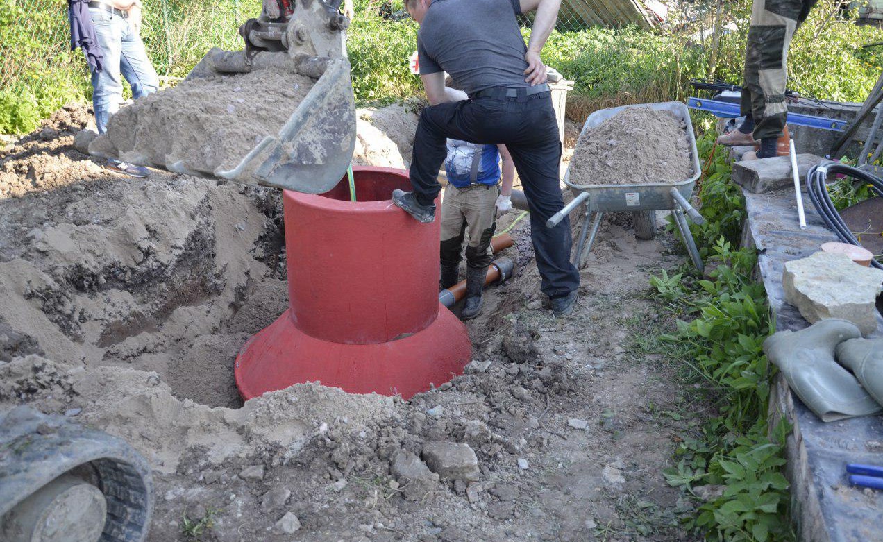 Pour l'installation, en plus de la fosse, il est nécessaire d'aménager une tranchée pour le tuyau d'égout et un puits absorbant. Ne placez pas les COV trop près de la maison, de la clôture, de la source d'eau propre et d'autres objets fixes. A la fin des travaux, seule la trappe d'un diamètre de 800 mm restera à l'extérieur.