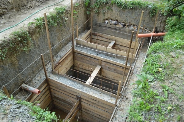Tout d'abord, le fond est bétonné, puis le coffrage est installé et les parois de la fosse septique sont coulées. Pour diviser une grande capacité en plusieurs sections, des murs en béton sont réalisés à l'intérieur.