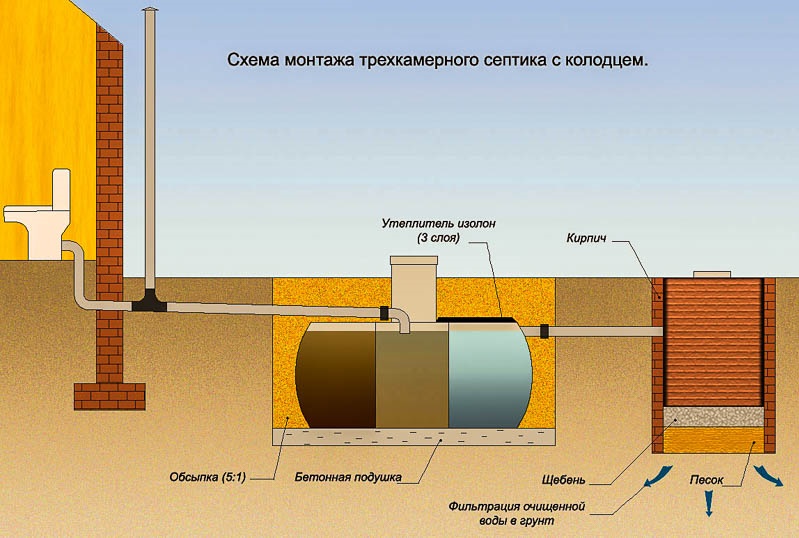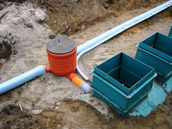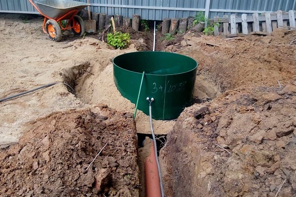 Le premier est l'insertion d'un tuyau d'égout menant de la maison. La distance entre les différentes parties de la fosse septique doit être d'environ 50 cm.