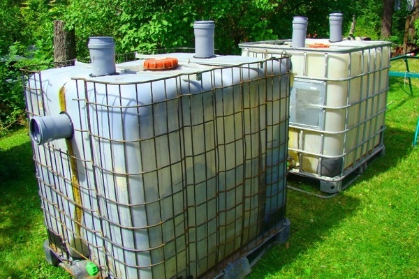 Pour un design fait maison dans cette situation, seul un récipient en plastique convient - un eurocube. Ou il vaut la peine de privilégier la capacité cumulée de production industrielle. Nous vous recommandons de vous familiariser avec règles de sélection des capacités pour fosse septique.