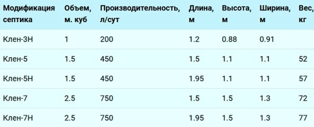 Les modèles de stations d'égout sont le plus souvent achetés pour des chalets et des maisons de campagne avec un nombre total de 5-8 habitants. Ils sont capables de résister à la décharge de la volée et autres drains avec un volume quotidien de 1 m3 et 1,5 m3 en conséquence. Le poids des conteneurs est de 92 et 110 kg et la hauteur peut atteindre 2 mètres.