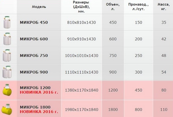 Il existe une gamme limitée représentée par quatre appareils. Cependant, le fabricant garantit que même le plus petit réservoir peut offrir une vie confortable à une personne et supporter la charge supplémentaire en cas d'arrivée de parents ou d'invités.