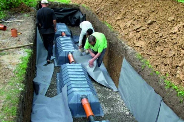 Il est strictement interdit de prévoir des itinéraires de transport au-dessus de la fosse septique. La plantation d'arbres la plus proche doit être effectuée à une distance de 3 m. Selon les normes sanitaires, les dispositifs de filtrage ne doivent pas être situés à moins de 15 m des puits et des puits.