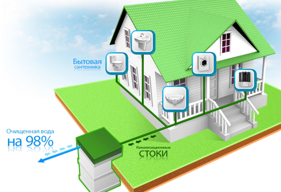 L'effet biochimique sur les eaux usées vous permet de les nettoyer autant que possible avant de les rejeter dans le sol, les gouttières ou les champs de filtration sous-jacents.