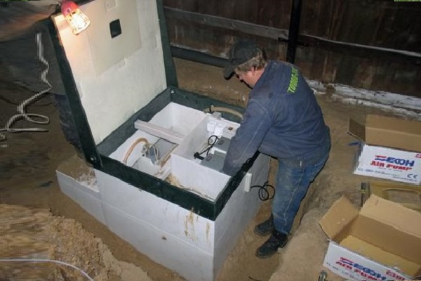 S'il y a un risque d'inondation de la station, le fond de la fosse est aménagé de manière spéciale. Il doit d'abord être soigneusement compacté et nivelé, guidé par le niveau. La base préparée est tapissée d'une couche de sable, formant un "oreiller" d'une épaisseur de 15-20 mm.