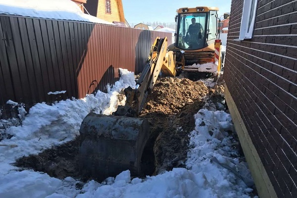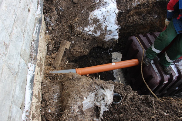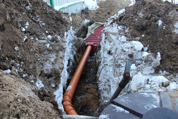 Les tuyaux d'égout sont posés dans des tranchées qui relient la fosse de fondation à la maison. Le creusement de tranchées en hiver est une autre phase sérieuse de l'excavation. La largeur de la tranchée sera plusieurs fois plus grande que le diamètre du tuyau. Pour le tronc, des tuyaux en plastique de 110 mm sont généralement pris.