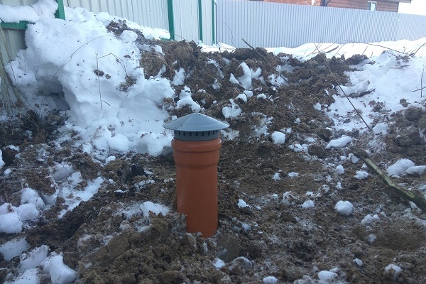 En hiver, l'installation se limite souvent à la construction de la fosse de fondation, à l'installation de la structure de la fosse septique elle-même et au raccordement des communications. Mais la ventilation est souvent oubliée.