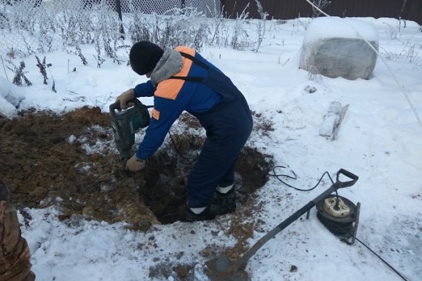 Comme il est très difficile de creuser un sol gelé en hiver, la première option - manuellement par vous-même - est pratiquement exclue. Même si vous décidez de creuser un trou de trois mètres, armé uniquement d'une pelle, cela prendra un temps considérable. Par conséquent, une telle méthode ne peut pas être qualifiée de rationnelle en ce qui concerne l'hiver.