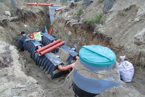 À la sortie, l'eau est purifiée de 75 à 80% (selon le nombre de chambres). Pour une clarification complète, le système est complété par un infiltrateur - un réservoir sans fond, installé dans une tranchée sur un «oreiller» de sable et de gravier.