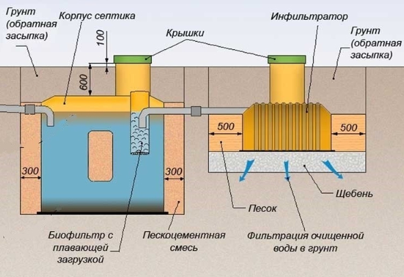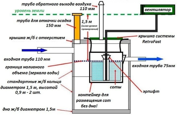 L'appareil d'une fosse septique: principe de fonctionnement et schémas d'organisation de base
