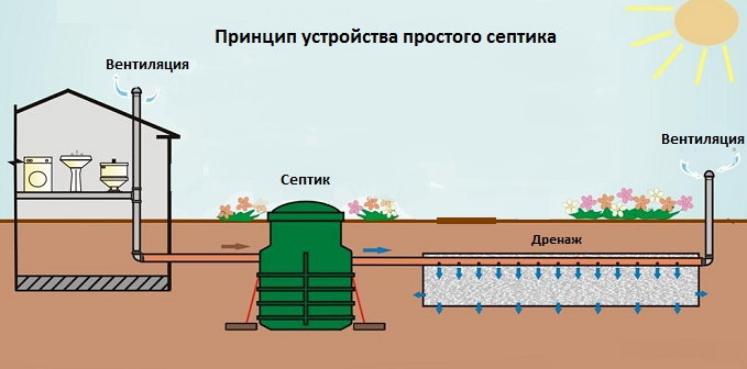 Les principaux éléments du système d'assainissement local basé sur la fosse septique et le principe de son action: