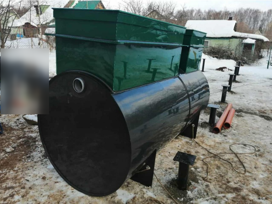 Réservoir cylindrique avec fond renforcé. La rigidité du réservoir est augmentée par des cloisons transversales. L'intérieur de la fosse septique est divisé en six chambres.