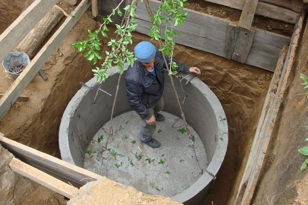 Tout d'abord, vous devez décider d'un endroit sous le trou de vidange. Il doit être éloigné de la fondation et du puits ou du puits d'eau. Et vous devez également décider immédiatement comment la voiture conduira pour pomper les eaux usées. De plus, vous devez connaître le volume de la fosse prévue, il est également nécessaire d'équiper une trappe technique. Et puis tout dépend de vos capacités financières: il peut s'agir d'une fosse en brique avec un sol en béton, ou bien d'un assemblage à partir d'anneaux de béton.
