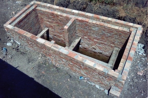 Pour équiper les fosses de drainage, des ébauches fabriquées en usine et des matériaux improvisés sont utilisés, par exemple, des pneus de voiture ou des briques rouges qui restent de la construction d'une maison.