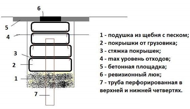 Il faut comprendre qu'après une certaine période (dans certains cas, de 3 à 5 ans), il sera nécessaire de démonter la structure en caoutchouc et de construire un nouveau puits, car fosse de vidange des pneus ne peut pas être réparé.