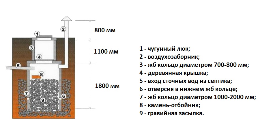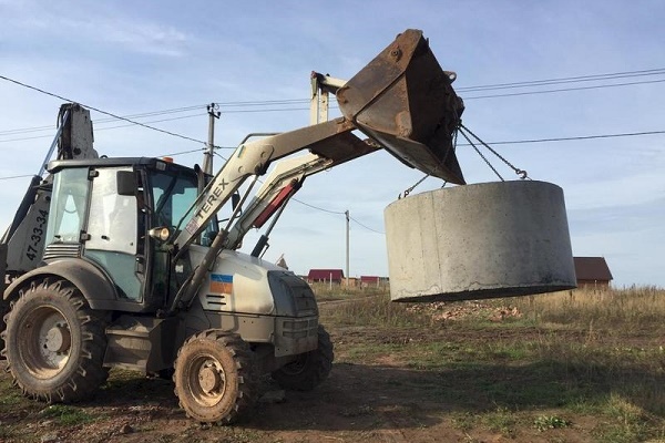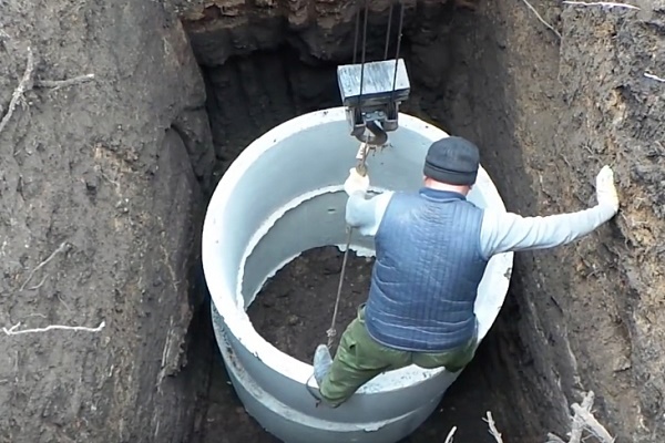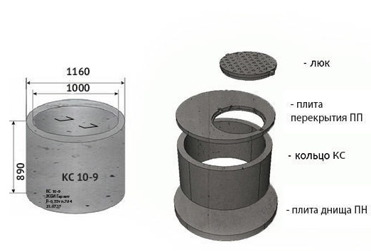 Le râteau des ébauches de béton de forme cylindrique sous forme finie est un puits de 2 m à 4 m de profondeur. Des anneaux de 2 à 4 pièces sont placés les uns sur les autres, les scellés sont scellés.