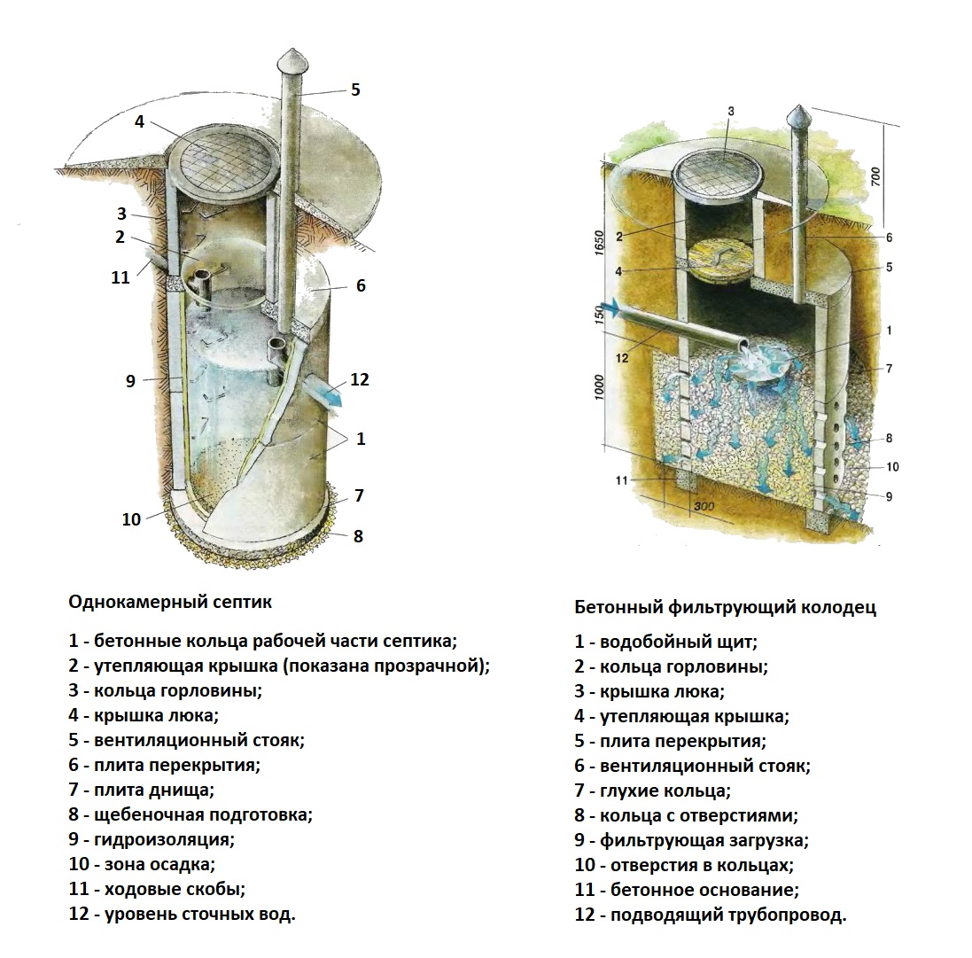 Pour déterminer la taille et le volume du puits, il est nécessaire de faire des calculs mathématiques simples. Si la maison permanente a une douche, des toilettes, une machine à laver, alors pour 1 personne il y a environ 150-200 litres d'eaux usées par jour.