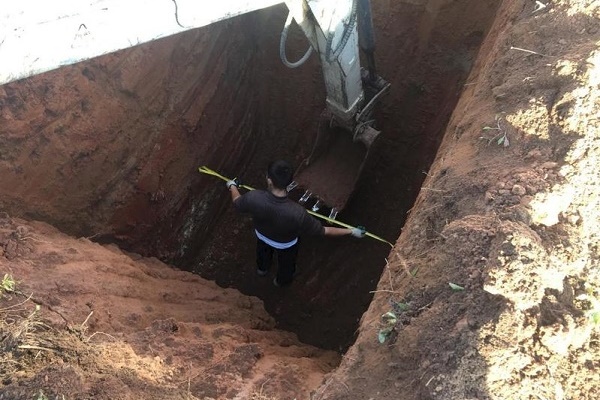 Si un treuil n'est pas fourni sur le chantier, il est préférable de commander un équipement spécial avec un manipulateur. Une personne ne peut pas le gérer. La seule chose que vous pouvez faire vous-même est de creuser une fosse.