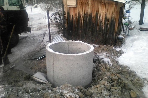 Habituellement, ils creusent une fosse à l'aide d'une excavatrice. Si vous décidez de creuser manuellement, utilisez une pelle et un seau sur une corde avec laquelle ils enlèvent la terre. Lors de l'utilisation d'anneaux en béton, creuser une fosse peut se faire comme suit: d'abord, un anneau est installé au bon endroit, puis ils commencent à creuser à l'intérieur, sapant progressivement le sol sous les murs de l'anneau.