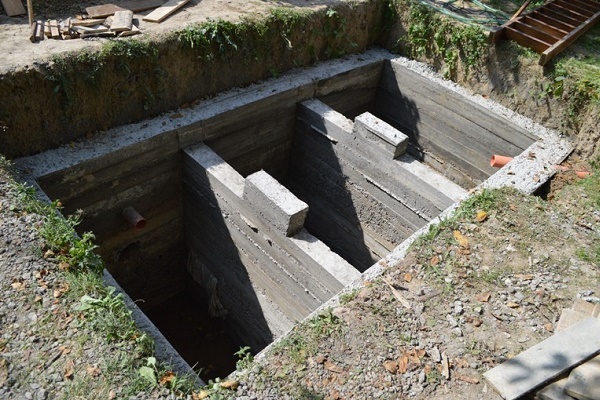 Une autre façon d'équiper un puisard scellé consiste à couler du béton. Pour ce faire, vous devez fabriquer la caisse et renforcer les murs de la structure à l'aide de renforts. Il s'agit d'une méthode assez longue et coûteuse, elle est rarement utilisée.