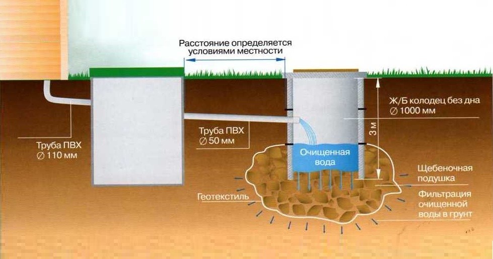 Vous devez également considérer les caractéristiques du sol sur le site. Plus la perméabilité du sol est élevée, plus la distance de séparation devrait être grandepuisard à deux chambres d'autres bâtiments.