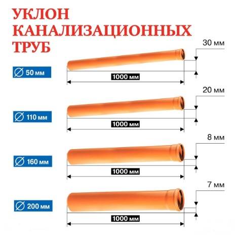 Étant donné que la distance devrait être assez grande, vous ne devez pas négliger les normes. Une pente trop forte peut entraîner des blocages, car le débit d'eau se déplacera à une vitesse plus rapide, sans avoir le temps d'entraîner les excréments / gros déchets lavés dans l'égout.