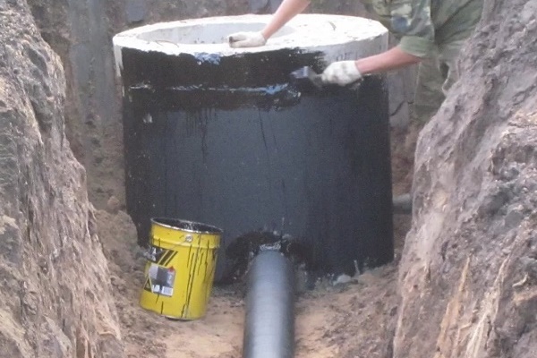 Si, au lieu de peindre au bitume-essence, deux couches de mastic de bitume sont appliquées et que l'isolation du rouleau est fondue, la durée de vie peut être triplée. Vous devez travailler aussi soigneusement que possible et assurer la ventilation du puits, car le revêtement à l'intérieur est associé à un certain risque.