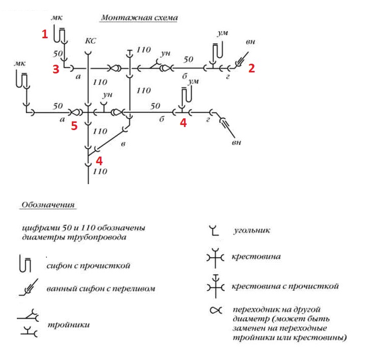 Traditionnellement, les conduites d'évacuation des appareils de plomberie tels que les éviers, les baignoires et les éviers domestiques sont faites sur la base de canalisations d'un diamètre de 50 mm. Les canaux de sortie des toilettes nécessitent un diamètre de tuyau plus grand de 110 mm.
