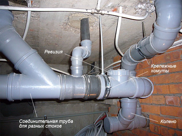 La colonne montante est fixée directement au mur à l'aide de colliers métalliques avec des revêtements en caoutchouc. Lignes directrices pour la sélection des tuyaux d'égout pour le câblage interne donné ici, nous vous recommandons de lire des informations utiles.
