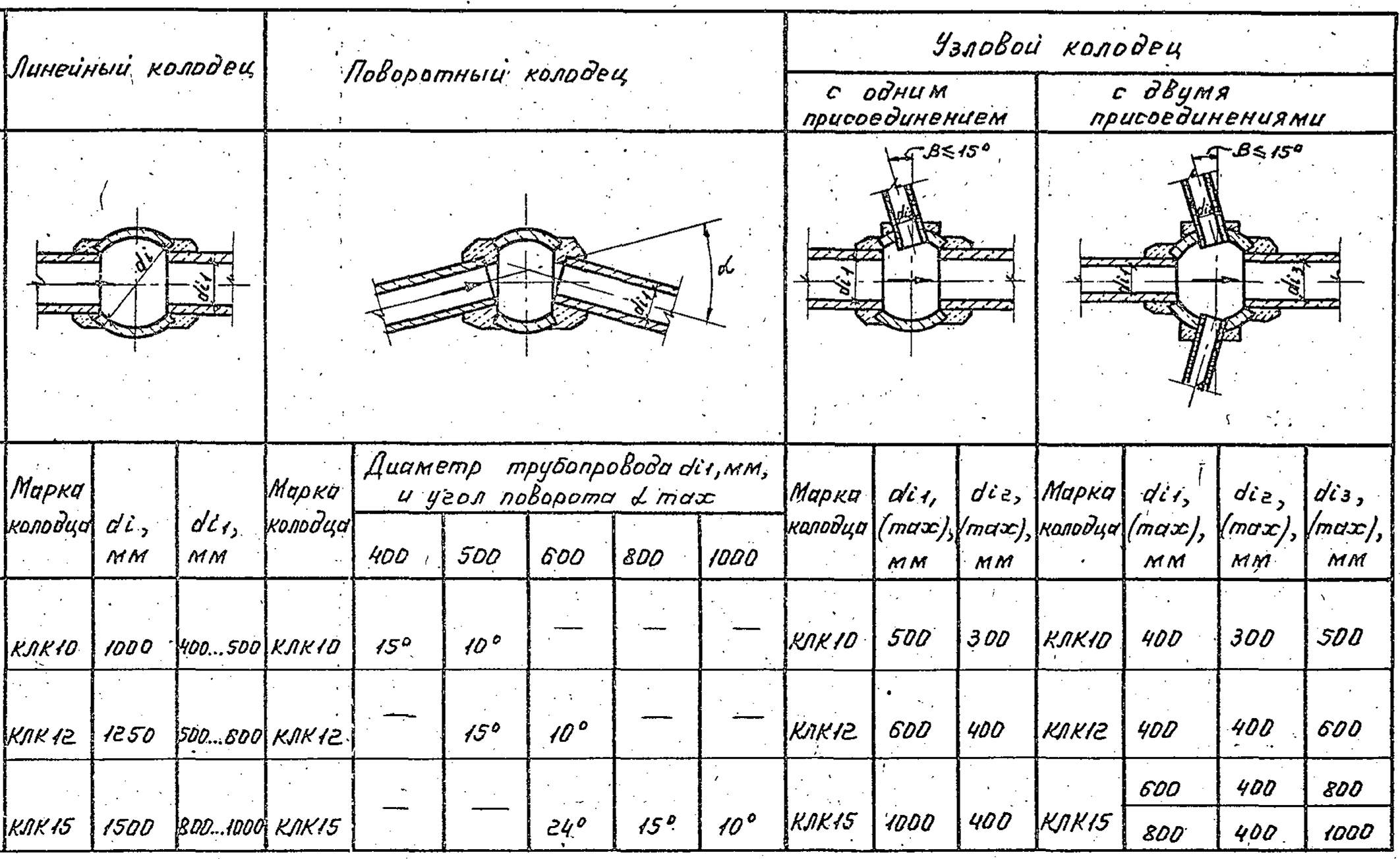 - si la profondeur du trou d'homme est de 1,2 m ou moins, pour les canalisations ne dépassant pas 150 mm, un puits d'un diamètre de 700 mm est autorisé;