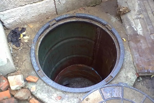 Le sommet du béton armé bien servi est une dalle de plancher. L'ouverture standard pour l'accès à la gaine de la structure de stockage ou de collecte doit être de 700 mm de diamètre.