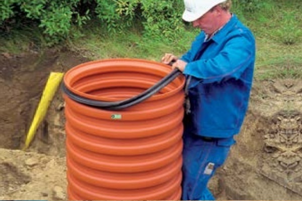 La chambre de travail du puits en plastique est montée dans son ensemble.En cas de risque d'inondation de la fosse, le puits est mis sous pression avant d'être rempli de terre.