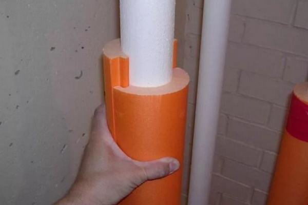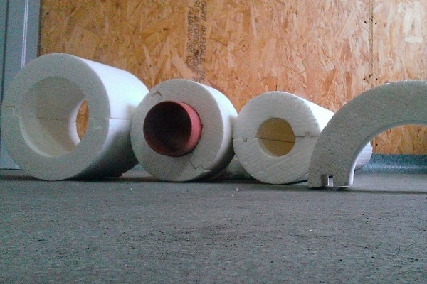 Pour chauffer les tuyaux d'égout, du polyéthylène expansé est souvent utilisé. Ce n'est pas un matériau très dense - jusqu'à 40 kg / m². Le coefficient de conductivité thermique est de l'ordre de 0,05.
