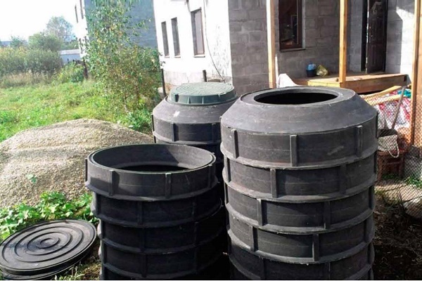 Les modules annulaires, qui sont assemblés par vissage, sont combinés dans un insert de la hauteur requise à l'intérieur ou à l'extérieur du puits. La première option convient si la fosse septique n'est pas profonde. Bien qu'il soit plus pratique de visser des sections sur le site, puis d'abaisser l'insert assemblé dans le réservoir d'égout.
