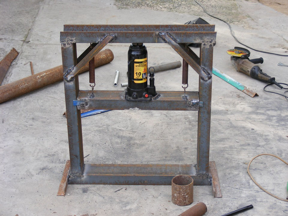 Des dispositifs hydrauliques tels que des vérins de bouteille familiers sont utilisés pour créer une forte pression. En règle générale, dans une ferme où il y a une voiture ou d'autres équipements, il existe de telles unités hydrauliques, mais leur capacité de charge peut être insuffisante.
