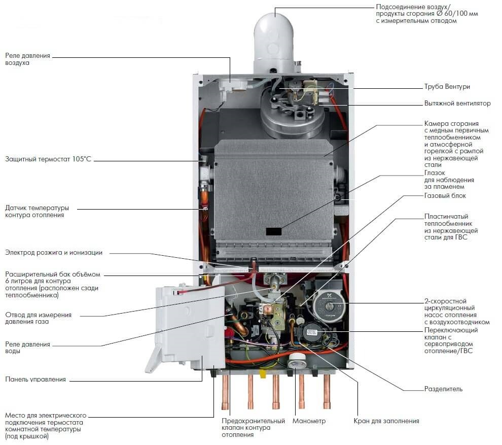 Les principaux composants des deux types de chaudières sont similaires - à la fois le nom et le but.