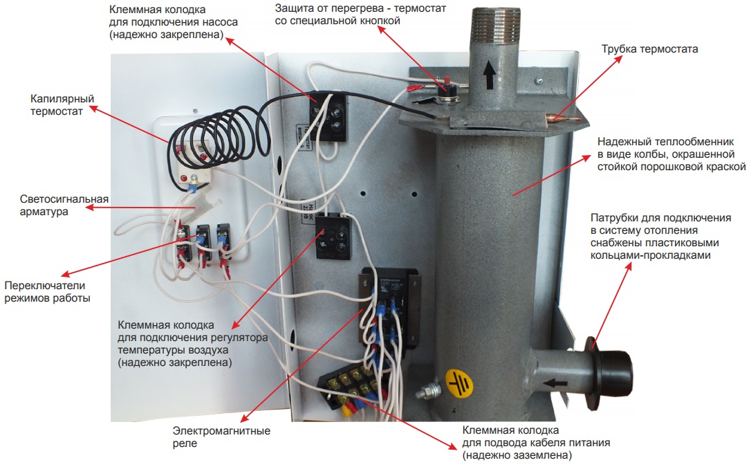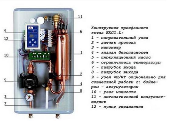 Les principaux éléments structurels d'une chaudière de chauffage électrique sont un réservoir et un élément chauffant. Les appareils sont équipés de systèmes de contrôle et de contrôle automatique.