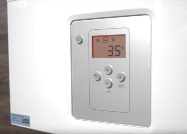 Un bonus pour les amateurs de confort est une télécommande D / U pratique avec un écran LCD, avec laquelle vous pouvez régler la température de l'eau dans l'approvisionnement en eau chaude, régler le mode d'économie de carburant.