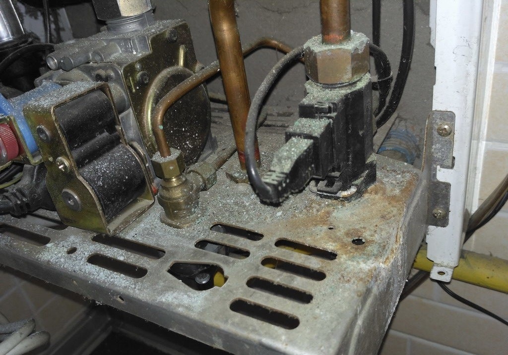 Si un échangeur de chaleur circule dans une chaudière à gaz, vous remarquerez des taches près des appareils électroménagers ou une erreur sur l'écran. Si nécessaire, retirez la pièce problématique.