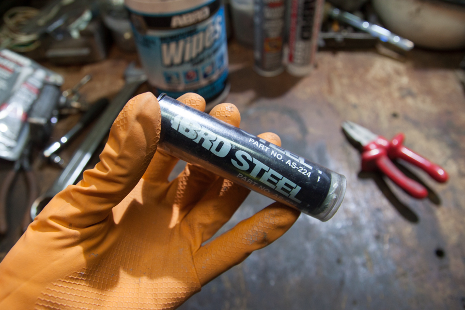 Choisissez les matières premières les plus résistantes à l'humidité parmi les offres du marché. Au tout début des travaux, enfiler des gants et ramollir le soudage par les doigts. Faites-le jusqu'à ce que la masse devienne plastique. Posez le matériau sur la fistule et étendez-vous le plus possible sur la zone. Rendez la couche épaisse, mais pas nécessairement plus elle est épaisse, mieux c'est. Appliquer avec un bâton en bois.
