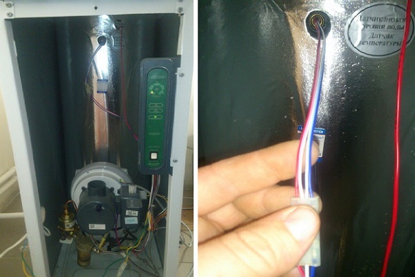 - fonctionnalités auxiliaires - connexion du bloc de l'élément chauffant à travers la zone de contact avec le régulateur de température ou une unité logicielle spéciale qui permet de contrôler à distance la chaudière;