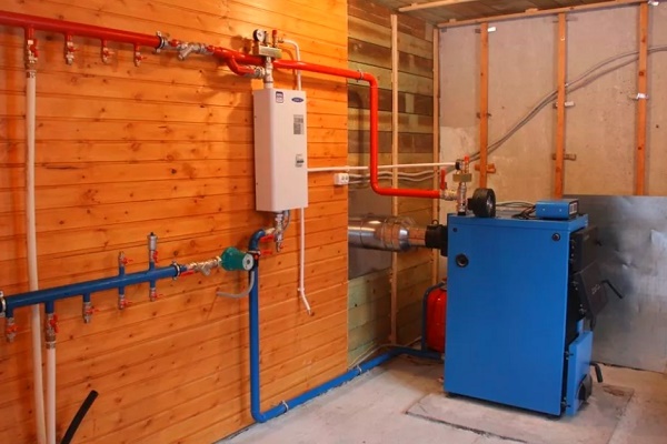 Les types de combustibles les plus économiques sont le gaz et le bois de chauffage. Les dimensions de l'appareil de chauffage fonctionnant avec un tel combustible sont impressionnantes - il a des chambres de combustion séparées pour chaque type de combustible.